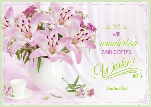 Postkarte Zahrtrosa Lilien - 12 Stück pro Päckchen