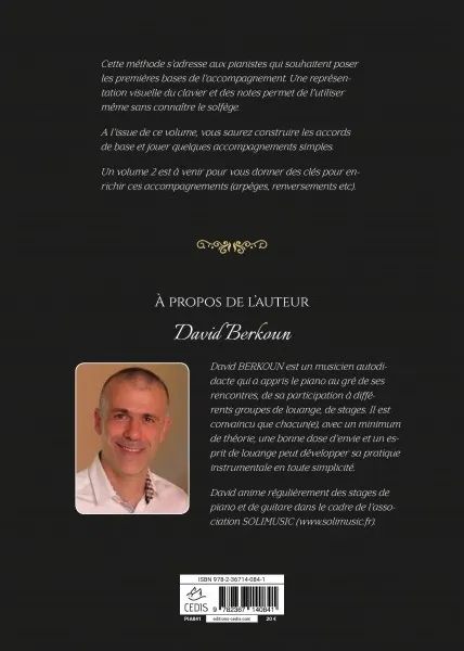 À propos de l’auteur : David BERKOUN est un musicien autodidacte qui a appris le piano au gré de ses rencontres, de sa participation à différents groupes de louange, de stages. Il est convaincu que chacun(e), avec un minimum de théorie, une bonne dose d’envie et un esprit de louange peut développer sa pratique instrumentale en toute simplicité.