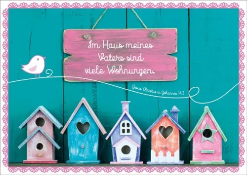 12 gleiche Postkarten mit Bibeltext und Sommermotiv Format 14,8 cm x 10,5 cm Sommermotiv Bibeltext nach Johannes 14,2: Im Haus meines Vaters sind viele Wohnungen!
