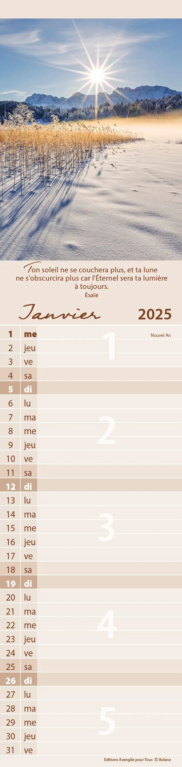 Calendrier cartes postales, vertical