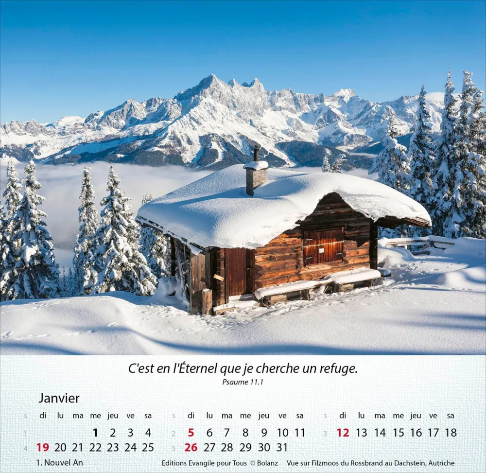 12 photos des Alpes etc. en couleur, versets bibliques, cartes postales à découper.