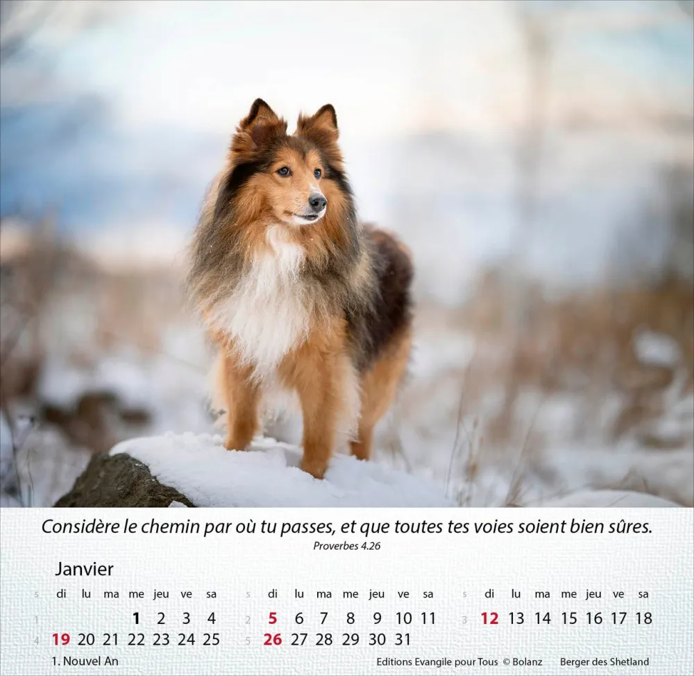 12 motifs de chiens en couleur, avec versets bibliques, cartes postales à découper. Avec spirale et support pour poser.