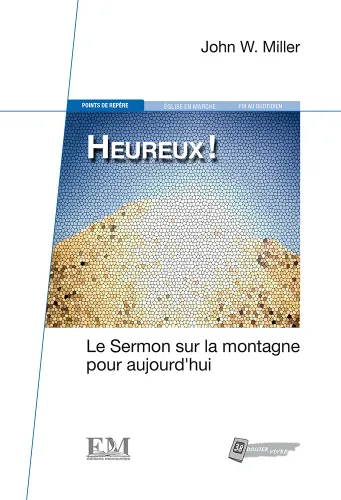 Heureux ! Le Sermon sur la montagne pour aujourd’hui de John Miller prend au sérieux le sens concret de ce discours de Jésus (Matthieu 5 à 7), sans le taxer d’impossible et sans le renvoyer à un arrière-monde. Ce livre participe d’une lecture anabaptiste du Sermon qui a fait des émules dans le monde évangélique. Il nous propose de refaçonner notre quotidien à l’aune des propos de Jésus, sans nous laisser écraser par un sentiment d’impuissance. Il y a là un chemin balisé par la joie de la rencontre du Christ, qui nous sauve et nous emmène à sa suite sur le chemin du Royaume. Avancées et retours en arrière, envolées et chutes seront nombreux… Mais le face à face avec Jésus constitue une aventure spirituelle à tenter. L’Esprit Saint est là pour nous accompagner. Il nous soutient dans cet apprentissage où la vie de disciple se développe en pratiquant, parce que nul ne peut connaître le Christ s’il ne le suit pas.