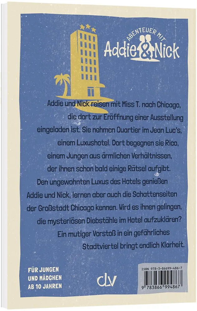 Addie und Nick reisen mit Miss T. nach Chicago, die dort zur Eröffnung einer Ausstellung eingeladen ist. Sie nehmen Quartier im Jean Luc’s, einem Luxushotel. Dort begegnen sie Rico, einem Jungen aus ärmlichen Verhältnissen, der ihnen schon bald einige Rätsel aufgibt. Den ungewohnten Luxus des Hotels geniessen Addie und Nick, lernen aber auch die Schattenseiten der Grossstadt Chicago kennen. Wird es ihnen gelingen, die mysteriösen Diebstähle im Hotel aufzuklären? Ein mutiger Vorstoss in ein gefährliches Stadtviertel bringt endlich Klarheit.