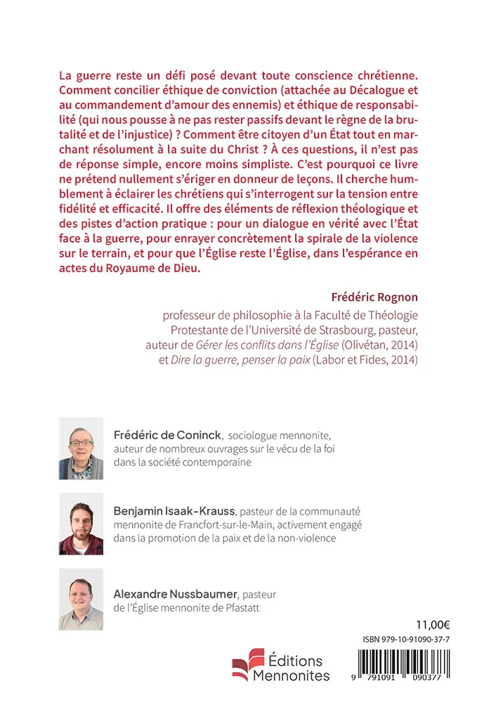 Frédéric Rognon professeur de philosophie à la Faculté de Théologie Protestante de l’Université de Strasbourg, pasteur, auteur de Gérer les conflits dans l’Église (Olivétan, 2014) et Dire la guerre, penser la paix (Labor et Fides, 2014)