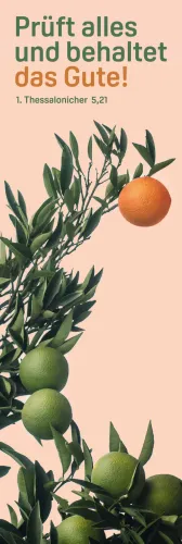 Dieses Jahreslosungsmotiv ist ein echter Blickfang! Mit einer klaren, angesagten Symbolik macht es auf die schlichte Wahrheit aufmerksam: Nicht jede köstliche Frucht, die uns das Leben bietet, ist reif und genussbereit. Oder bekommt uns. Diesen prüfenden Blick auch mit in unser alltägliches Leben zu nehmen, dazu ermutigt die diesjährige Jahreslosung. Da möchte man sich direkt ausstrecken dem Guten, das uns Gott in seiner Fülle schenkt!